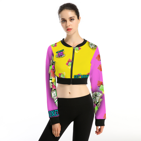 GET MONEY CANDY Women's Crop Jacket Yellow Pink
